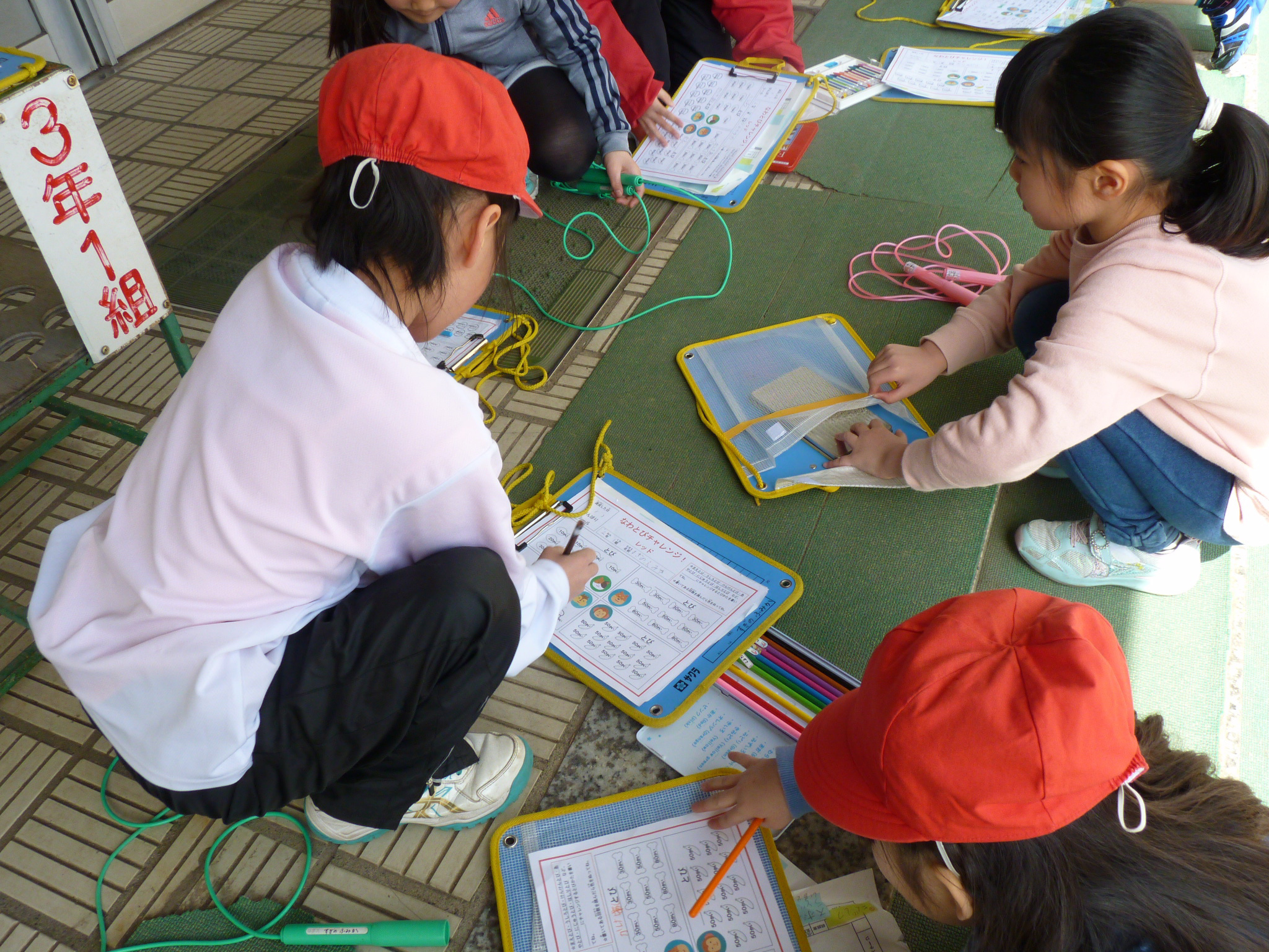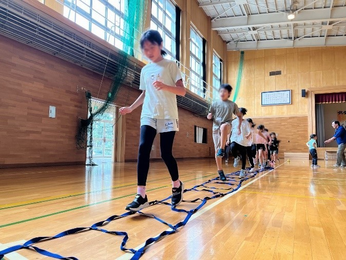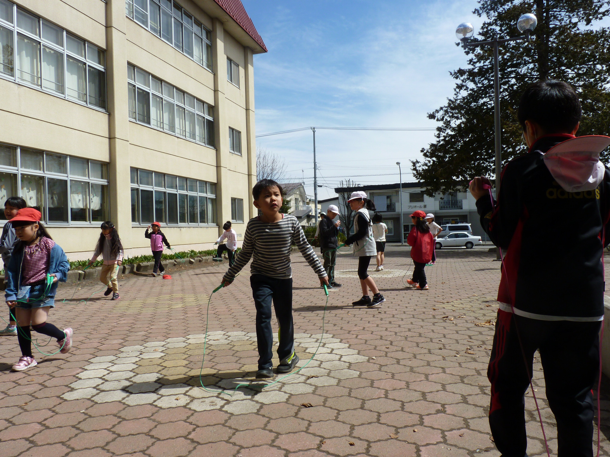 『なわとびがんばりカード』という取り組みがあります。これは、休み時間になわとびを跳んで、跳んだ回数に応じて『なわとびがんばりカード』にシールがもらえるというものです。なわとびは手軽に始められる運動ということもあってか、体育館や外などで多くの児童が楽しそうになわとびを跳んでいます。